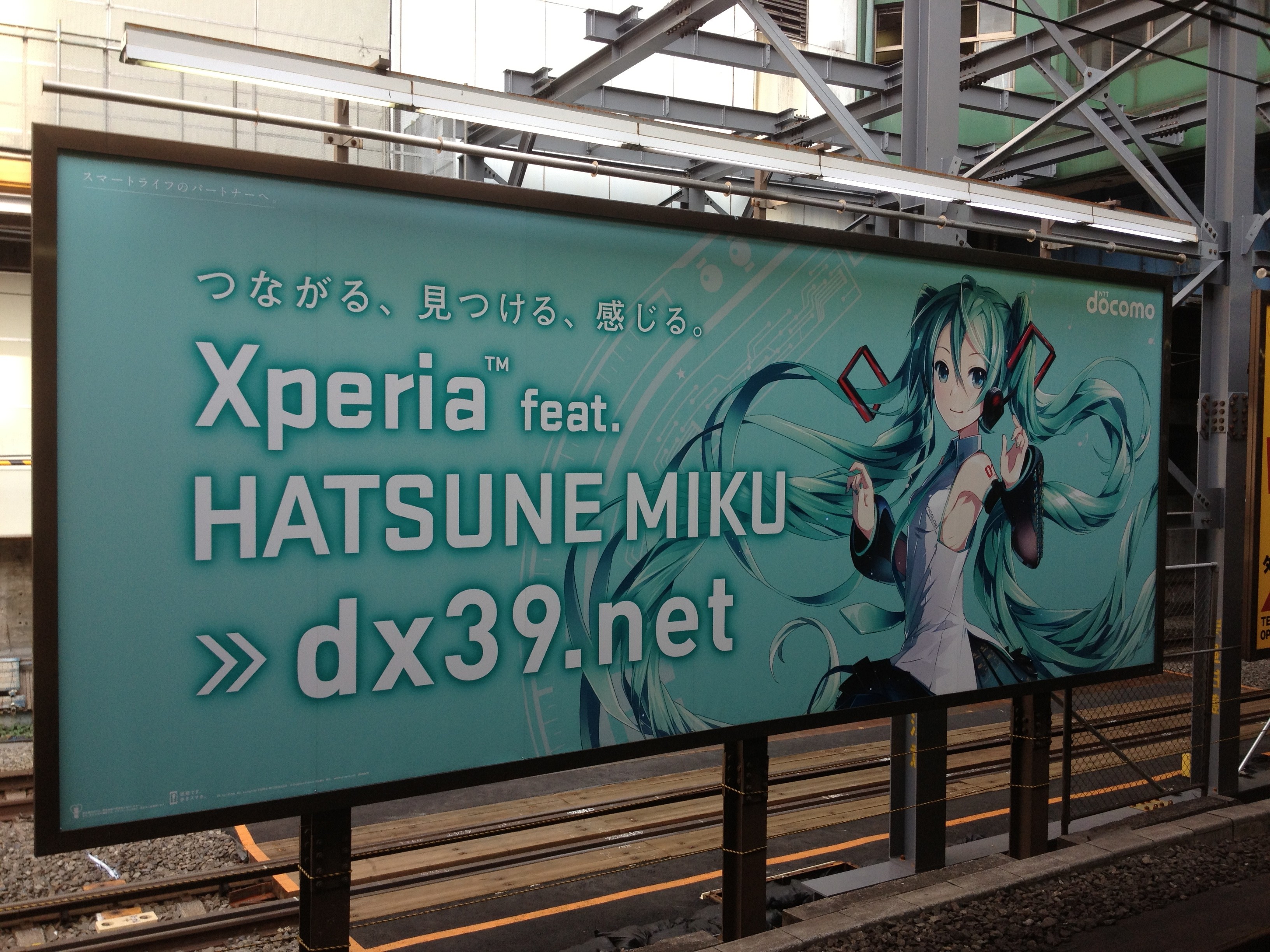 Reklama na Miku Xperia telefon na stanici v Shibuyi